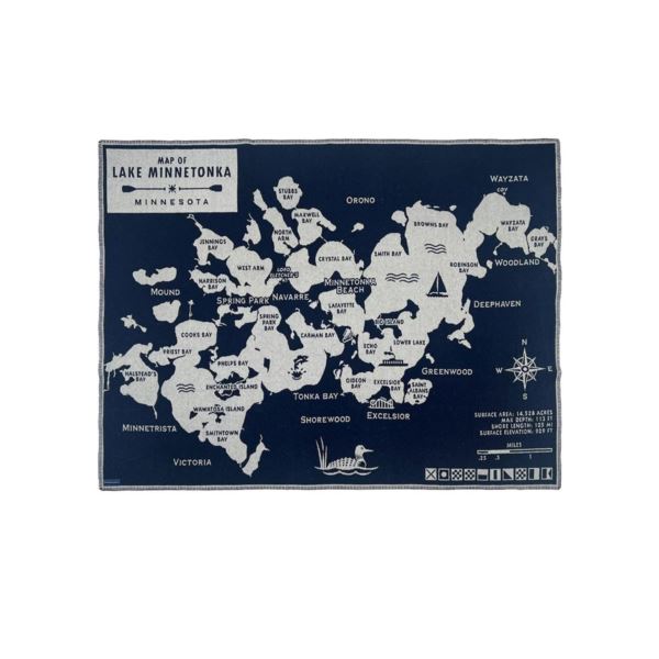 Faribault Mills Lake Minnetonka Map Wool Throw