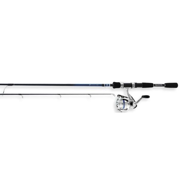 With a fiberglass rod and reel already paired up, this Daiwa® D-Shock® freshwater spinning combo is the perfect grab-and-go for your next fishing trip. The DSK-2B reel features a powerful Digigear™ digital gear system for ultra-smooth operation and an ABS® aluminum spool to make casting easier and ensure that 100% of your line is usable. (Fishing line not included) Line Capacity (LB. Test/Yards): 8/240, 10/200, 12/170. The 7-foot rod features a comfortable EVA foam handle for a secure grip during long days on the water.