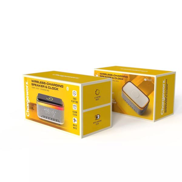 Chargeworx Bedside Alarm Clock with 15W Fast Wireless Charger & Bluetooth Speaker